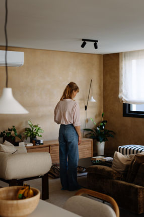 Interior design project for a living room, where natural tones and nature-inspired elements create a practical, comfortable, and welcoming environment.